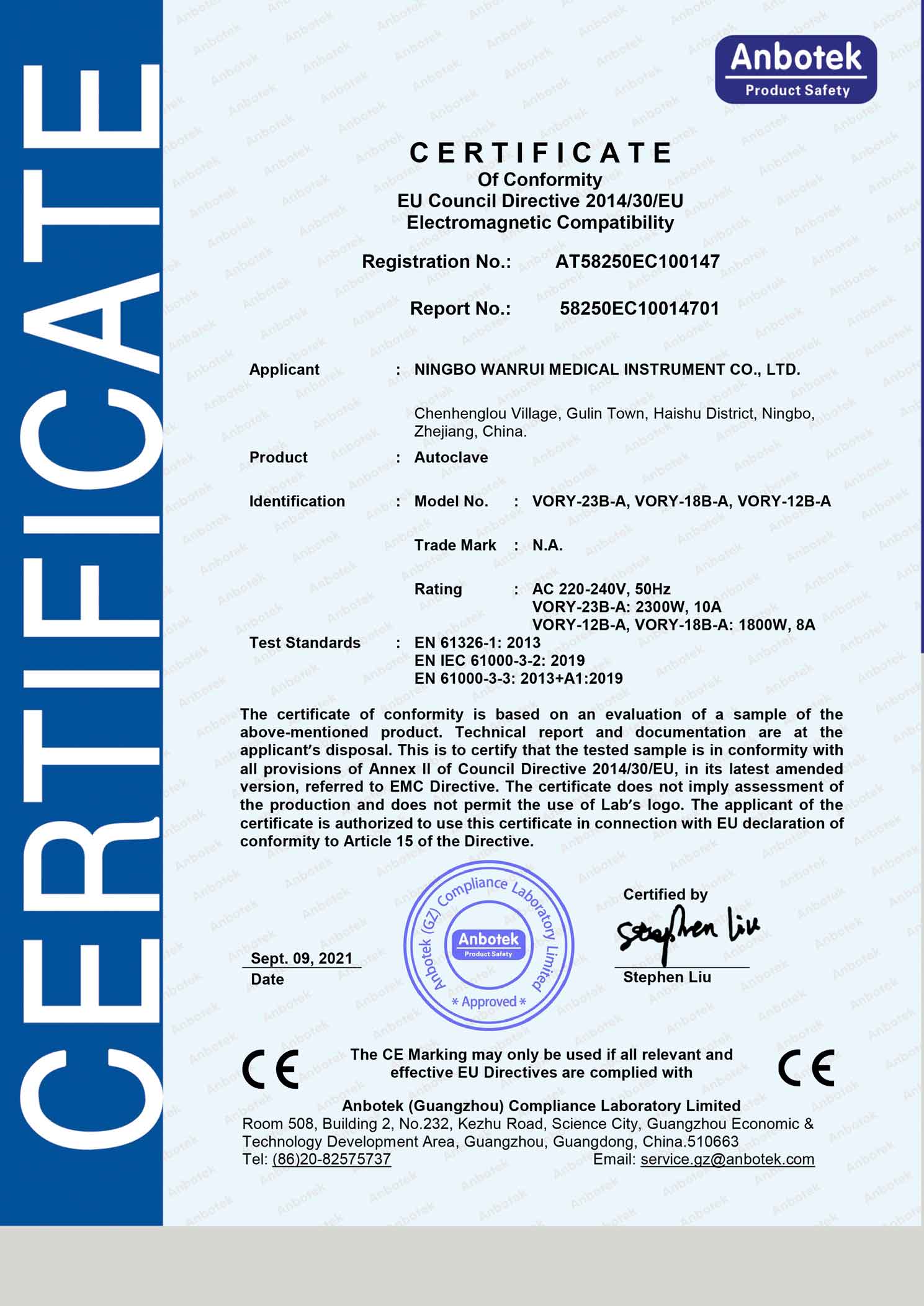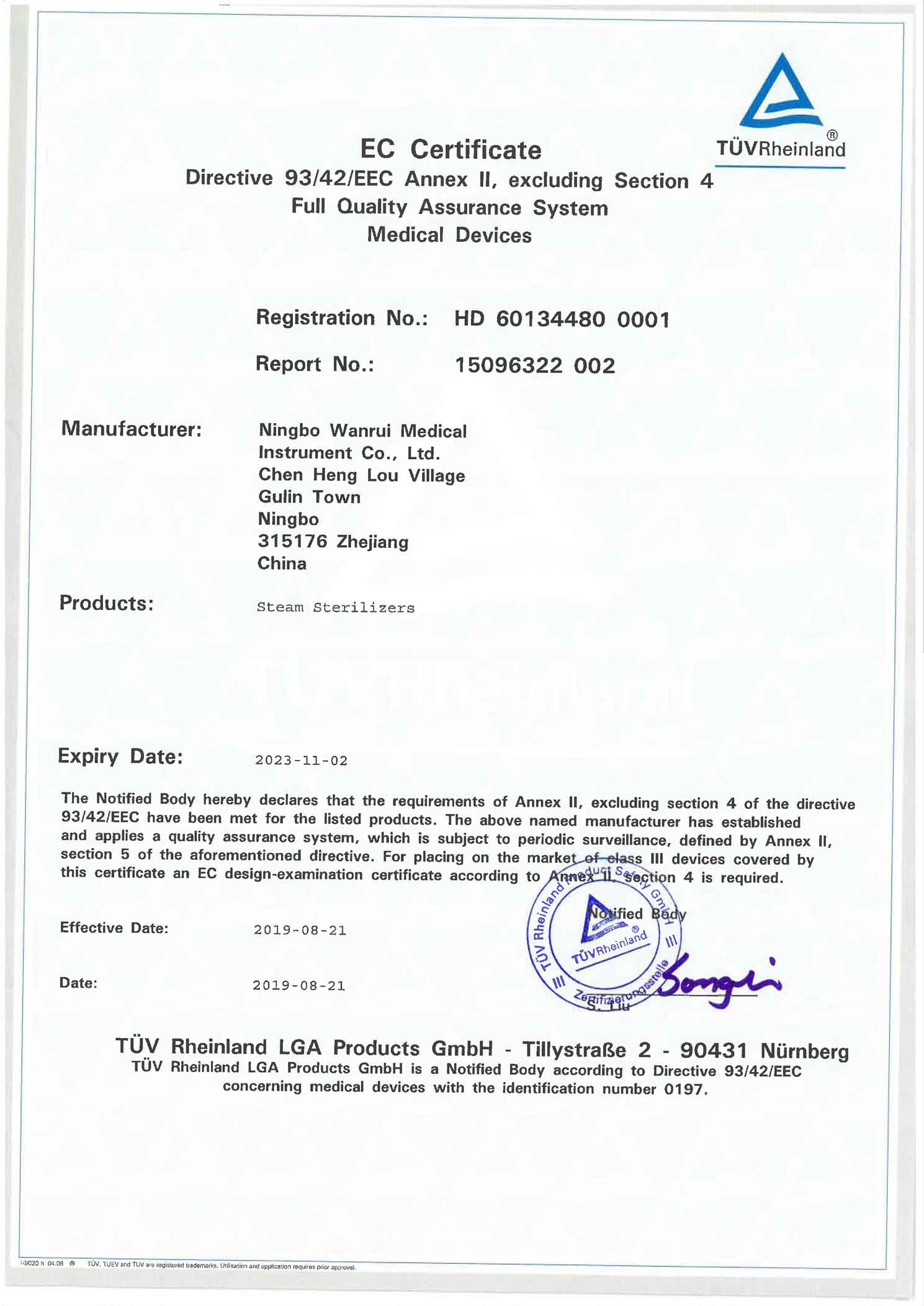 Onze autoclaafproducten voor medische sterilisatoren zijn geslaagd voor het kwaliteitsmanagement van ISO9001 en ISO13485