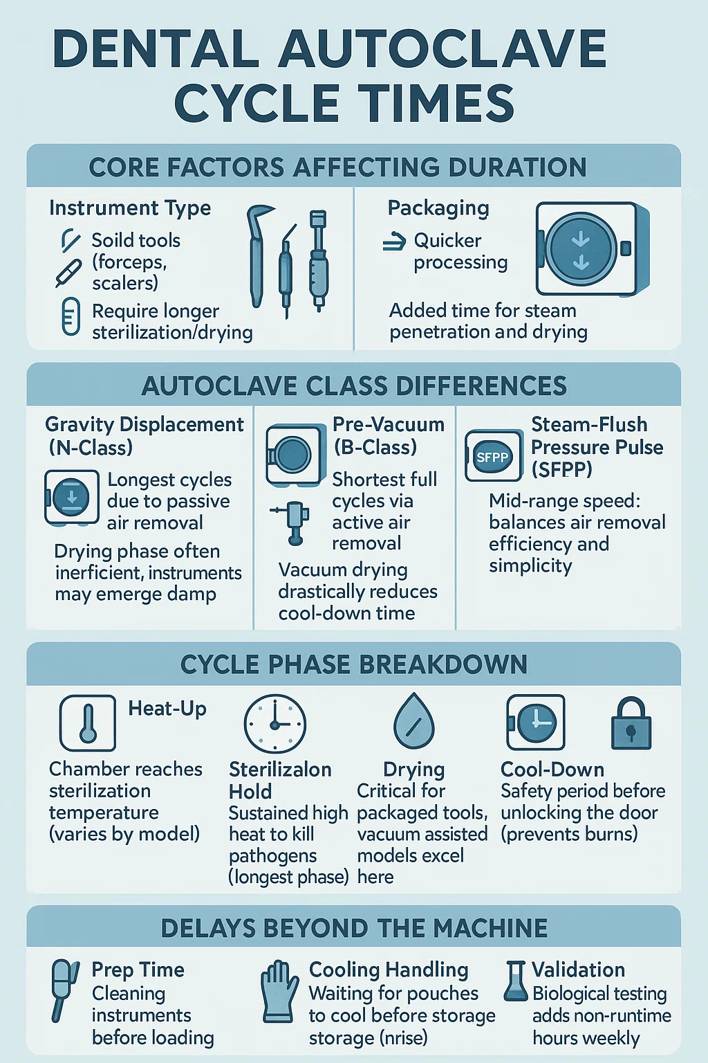Hier is een overzicht van tandheelkundige autoclaaf cyclustijden, gericht op praktische factoren:
